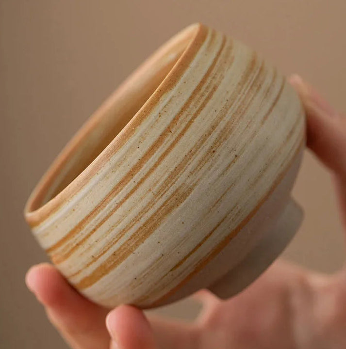 Fabricada a mano en gres Wabi Sabi, combina estética y funcionalidad para tu momento de café o té. Su tamaño compacto de 7,5 x 5,5 cm es perfecto para bebidas intensas. Producto ecológico que requiere cuidado especial: se recomienda lavar a mano para preservar su calidad.