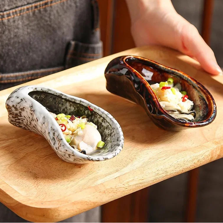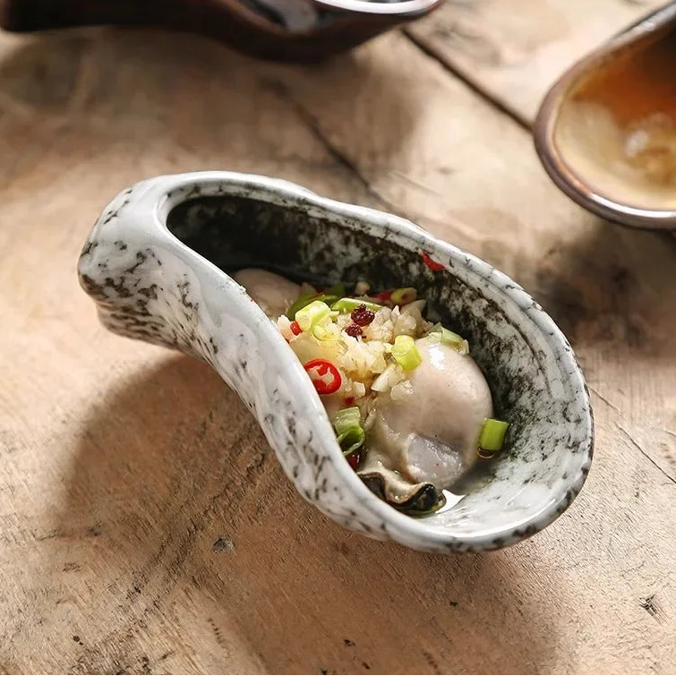 Presenta tus platos favoritos con estilo con nuestro elegante plato de cerámica en forma de ostra.